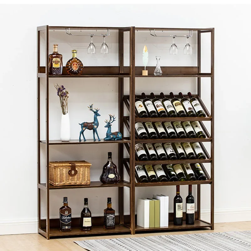 Safe Wooden Bar Cabinet Vintage Vertical Drink Display Shelf Kitchen Home Nordic Buffet Wine Rack Standing Gabinete