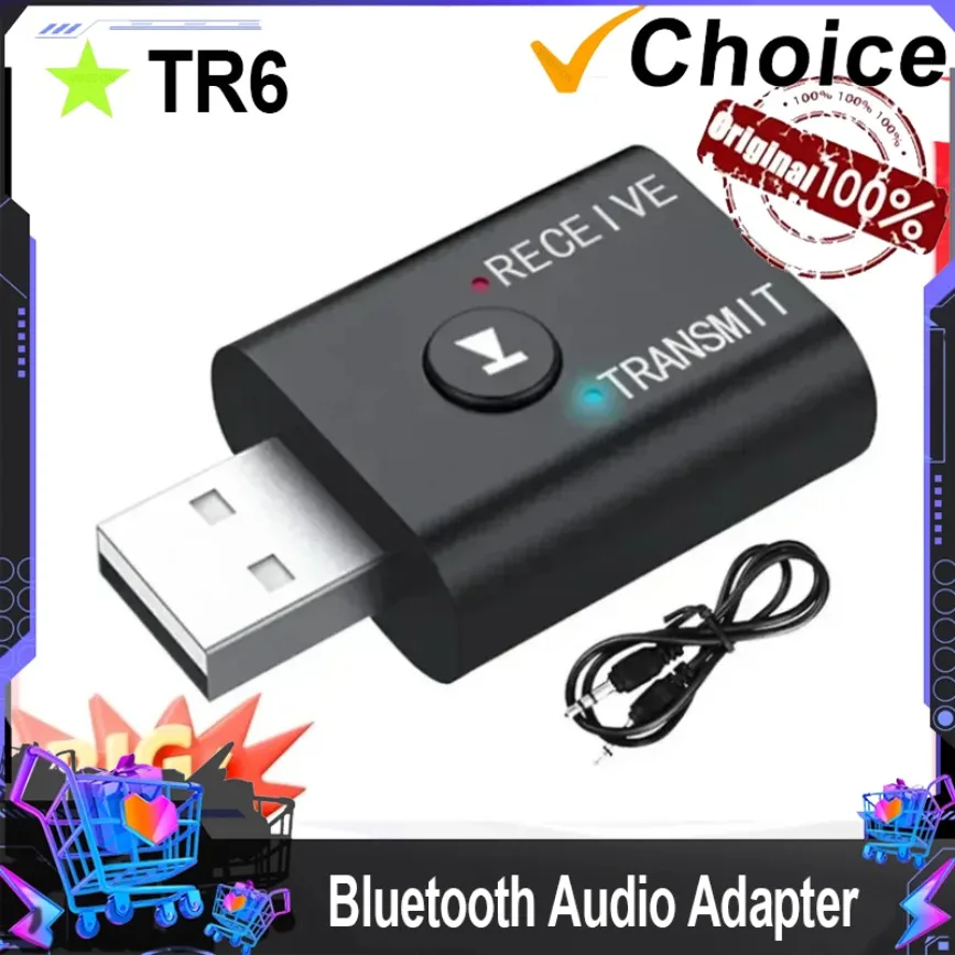 Bluetooth 5.3 Wireless Audio Adapte Receiver Transmitter 3.5mm AUX Jack Airplane USB Dongle for TV PC Headphone Car kit Speaker