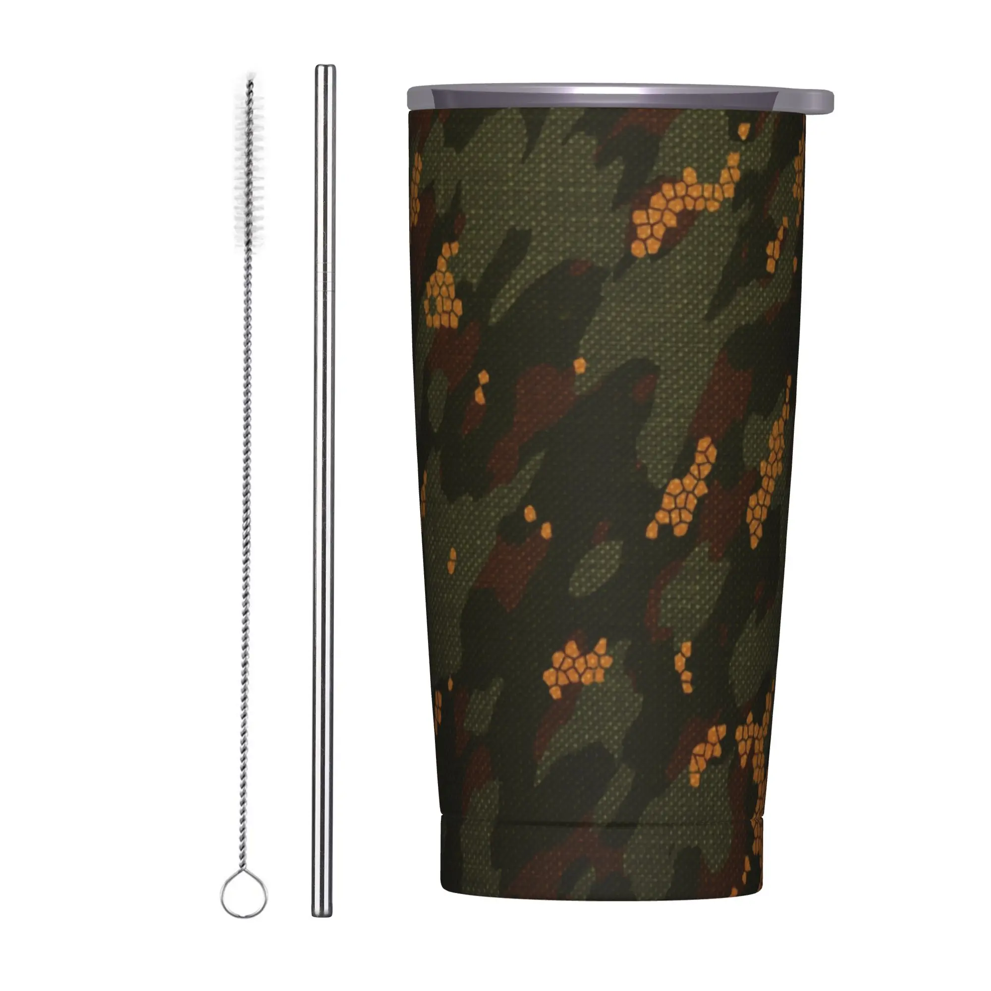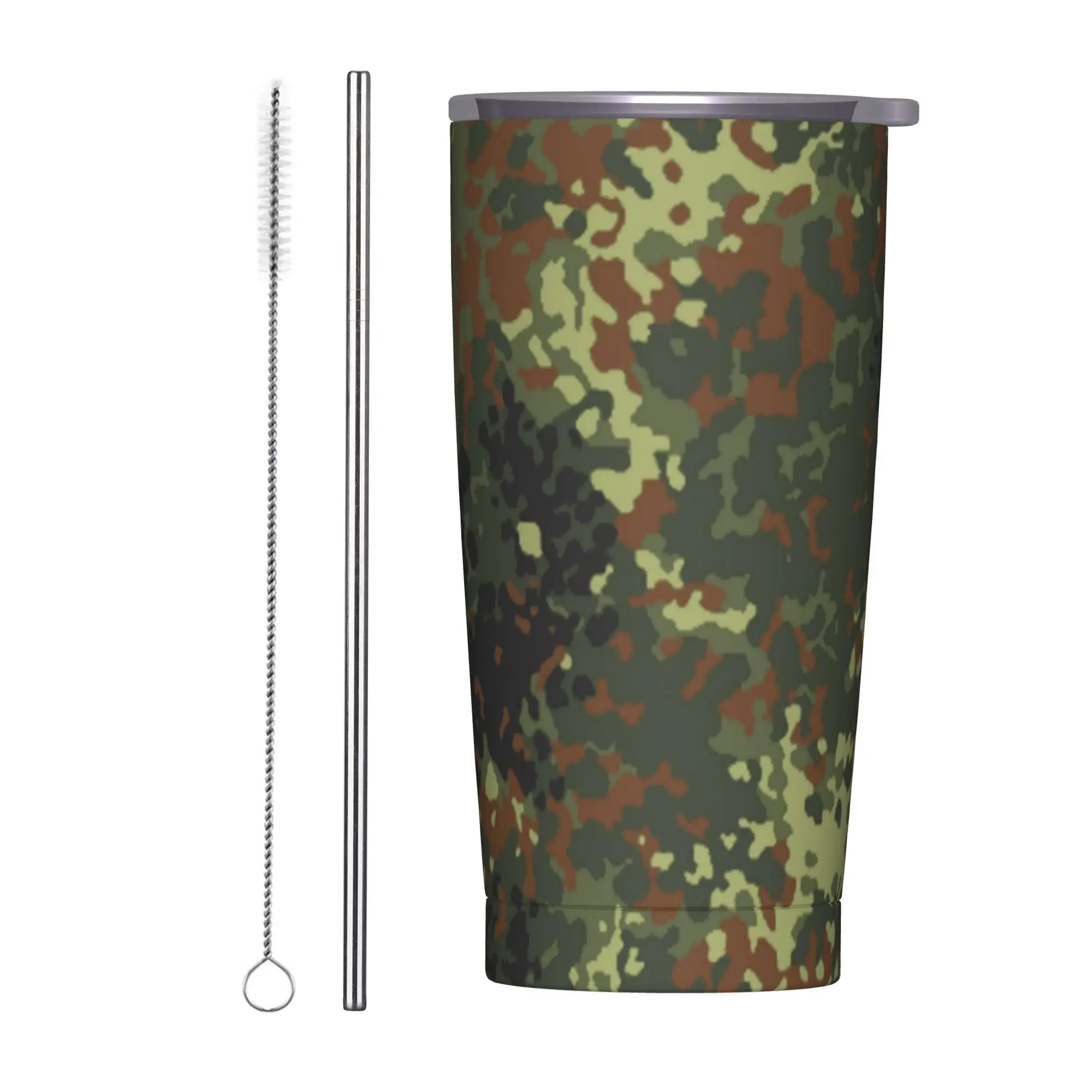Splintertarn German Camouflage Insulated Tumbler Vacuum Straw 20oz Double Wall Stainless Steel Coffee Mug Tags Car Bottle Cups