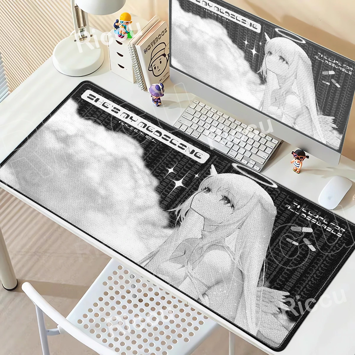 Angel Mousepad Black White Cute Anime Girl Rubber MouseMat Kawaii Gaming Deskmat Large Anti-Slip Art Design Mat Desk Accessories