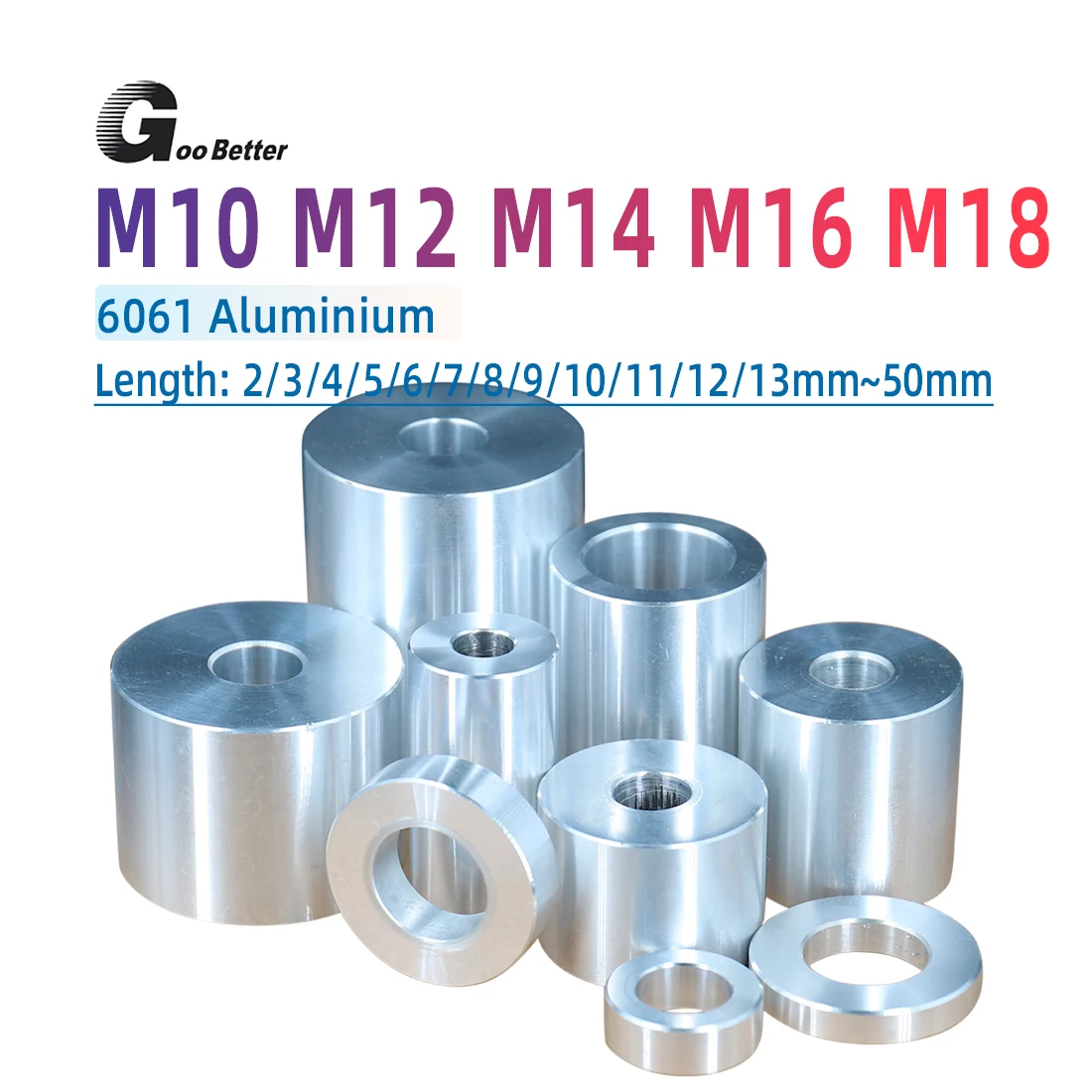 Aluminum Flat Washer M3 M4 M5 M6 M8 M10 Height 2mm to 30mm Aluminum Bushing Gasket Spacer Non-threaded Standoffs