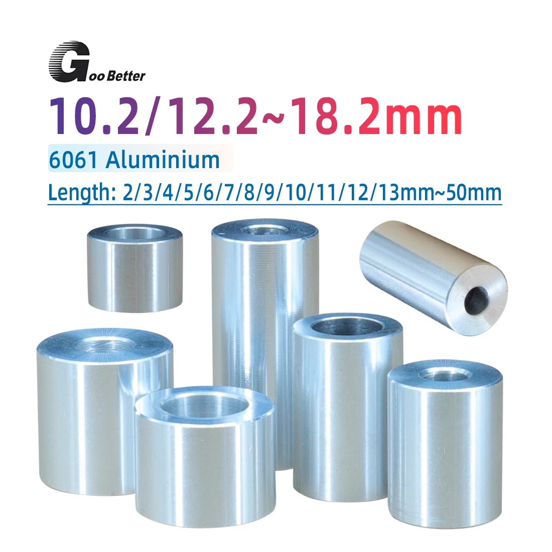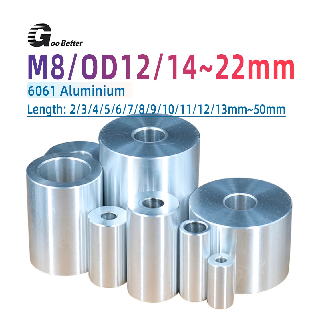 1pcs OD 22mm Aluminum Bushing Lengthen Washer Sleeve Unthreaded Hollow Casing Round Column Joint Length 2-50mm 8.2/10.2/12.2mm