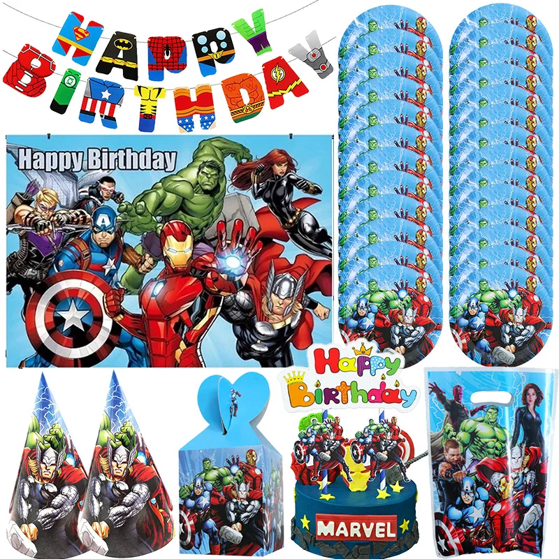 The Avengers Marvel Children Birthday Decor Disposable Tableware Napkins SpiderMan Iron Man 3D Balloon Super Hero Party Supplies