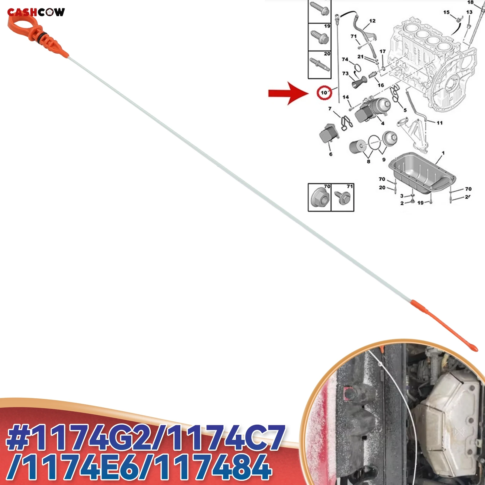 1x Car Engine Oil Level Dipstick Engine 1174G2 1174.G2 1174E6 117484 For Citroen C2 C3 C4 C5 Peugeot 1007 206 207 3008 407 5008