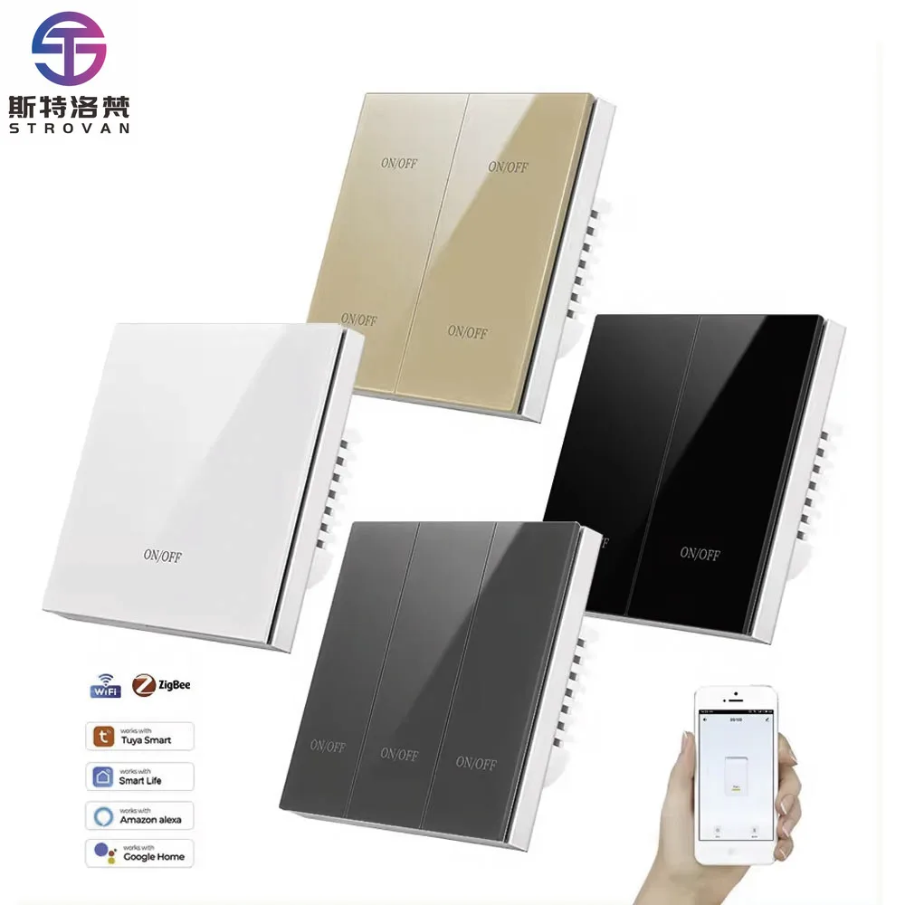 STLF Zigbee Tempered Glass Smart Home Touch Light Switch 1/2/3/4 Gang Tuya App Remote Control Wall Switch Work With Google Alexa
