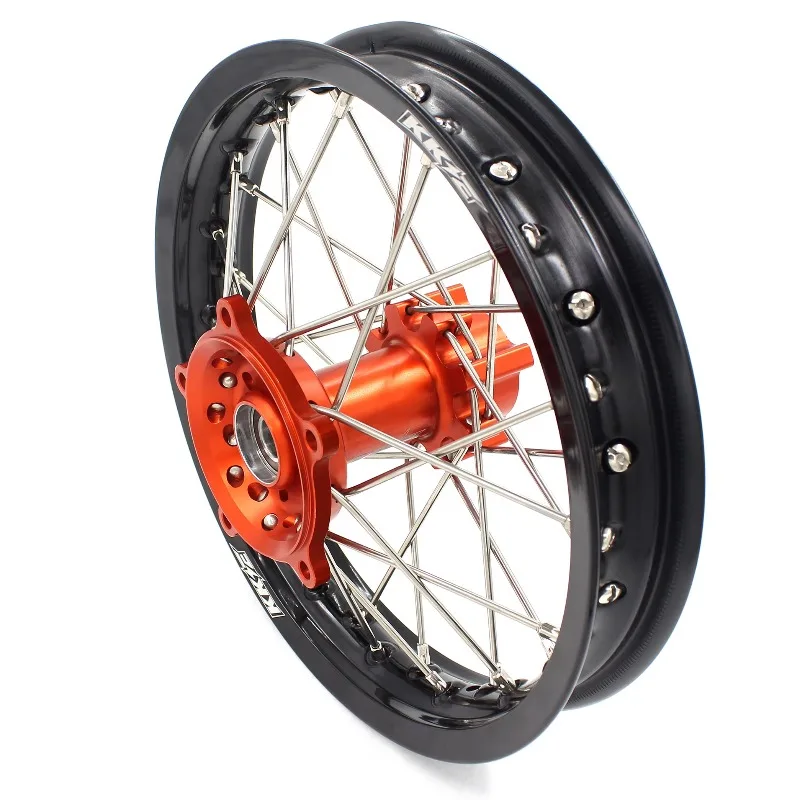 【2025】 14/12 Mini Kid's Wheels Rims Set Compatible With KTM65 SX 2002-2024 CNC Machined Orange Hub Black Rim