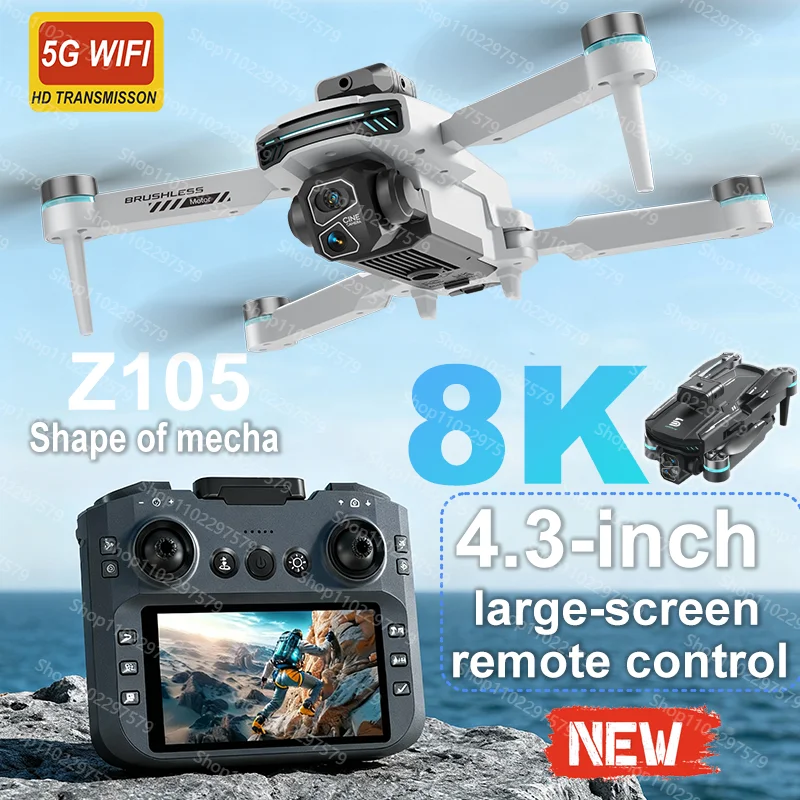 New Z105 RC Drone 8K Professional HD Camera FPV Optical Flow Positioning Brushless Motor 4.3 Inch Screen Control Quadcopter Toys