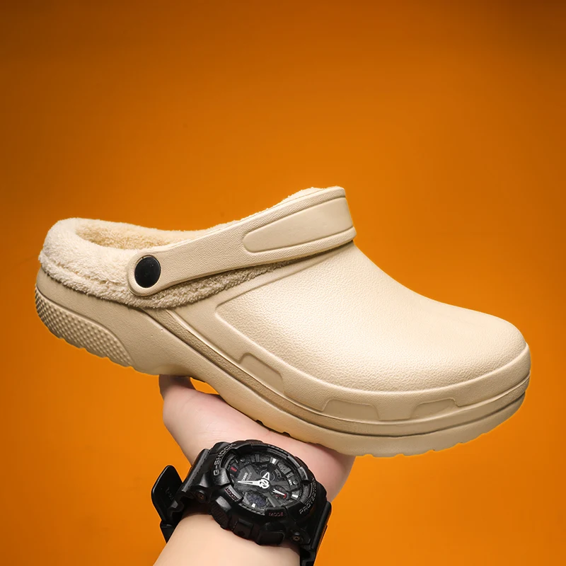 winter fluffy slippers men outdoor clogs warm home cotton shoes indoor cozy slides pull on comforty non-slip chef shoes