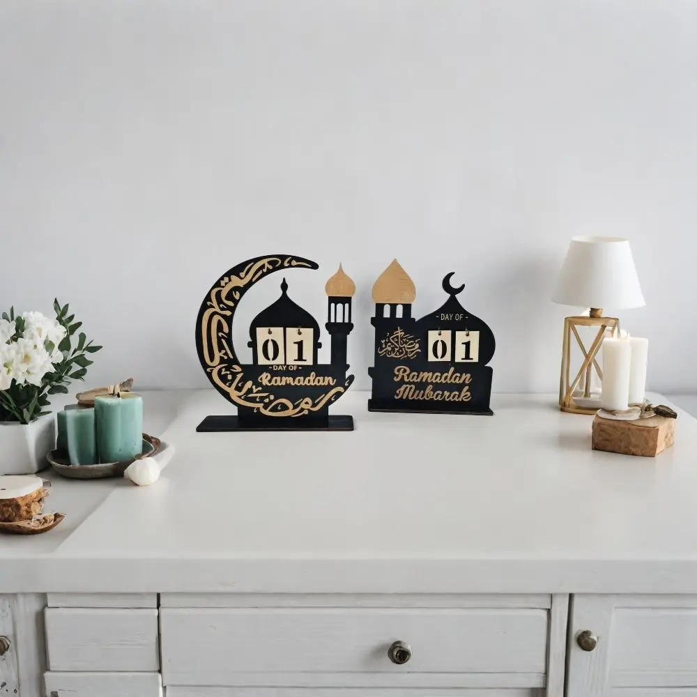 1pcs Ramadan Wooden Castle Countdown Calendar DIY Block Ornament Home Living Room Bedroom Holiday Desktop Decor Craft