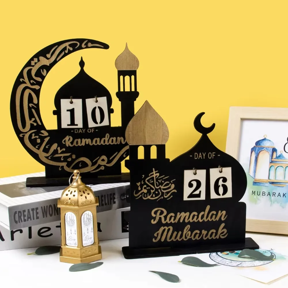 Ramadan Countdown Eid Mubarak Calendar Blocks - Muslim Wooden Tabletop Decor for Holiday Home Use