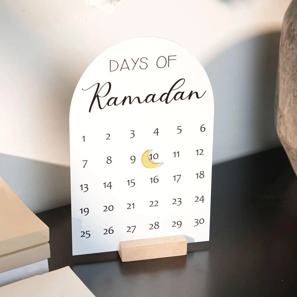 Acrylic Ramadan Advent Calendar 30 Days White Mirror Countdown Calendar DIY Crafts Wooden Base Ramadan Table Ornament