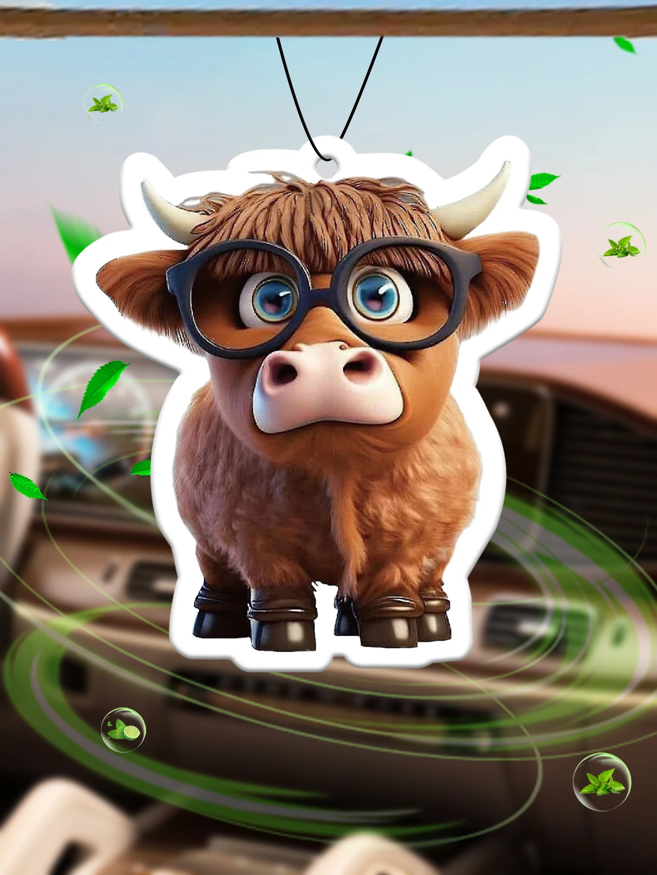 Cute Highland Cow Wearing Glasses Intercontinental Hotel (Hotel Scent) Car Air Freshener | Rearview Mirror Hanger & Dual-Purpose Air Vent Clip | Natural Material Aromatherapy Tablets | Long-Lasting Fragrance for 90 Days | Alcohol-Free | Not Afraid of Direct Exposure to the Sun | Designed Specifically for Odor Removal in Cars, Closets, and Bathrooms. | Cartoon Animation Graphics | Unisex | Luxury-Grade Fragrance | Five-Star Hotel