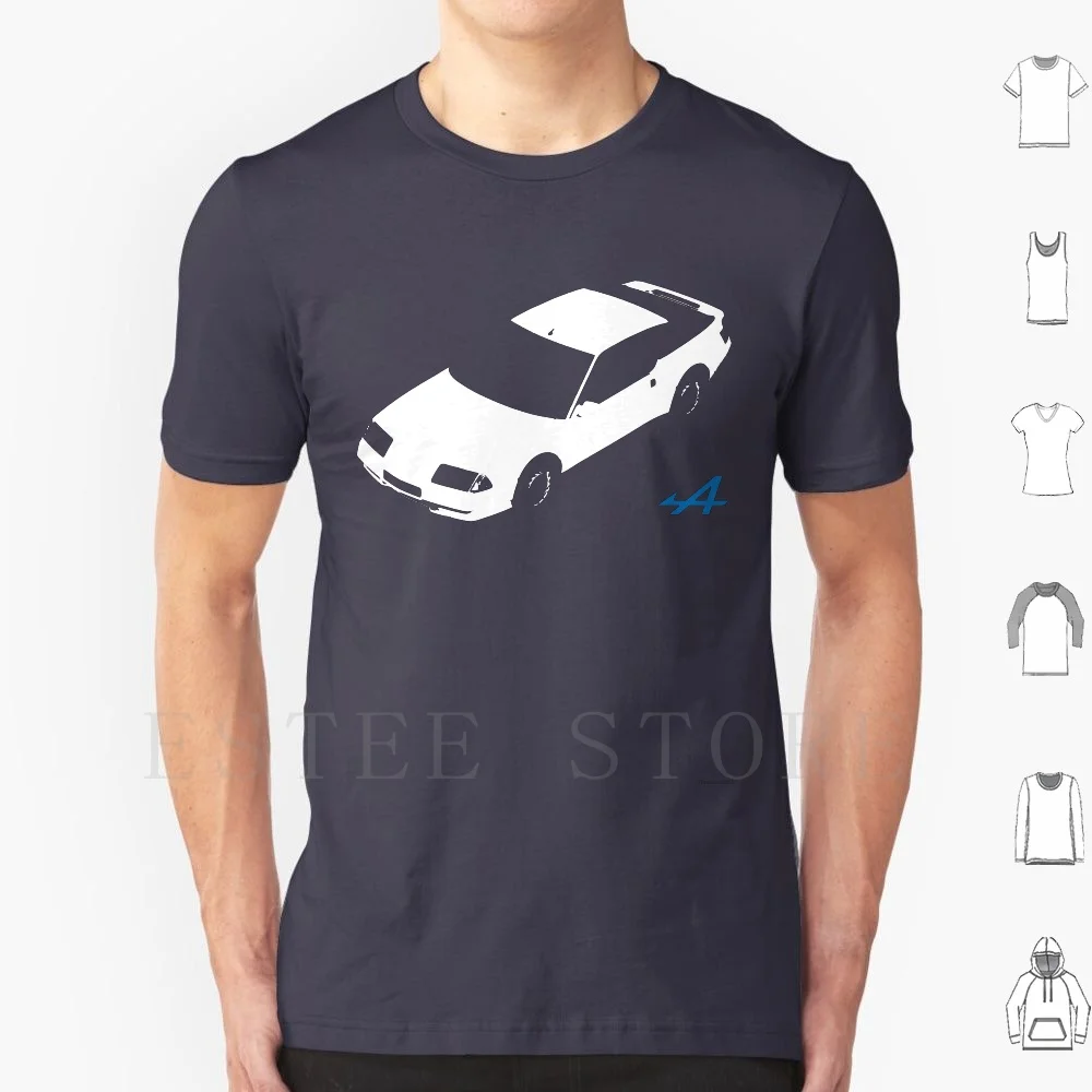 Alpine ( White ) T Shirt DIY Big Size 100% Cotton Alpine A310 A610 V6 French France Sports Car Cars 1970s 1980s 1990s 70s 80s