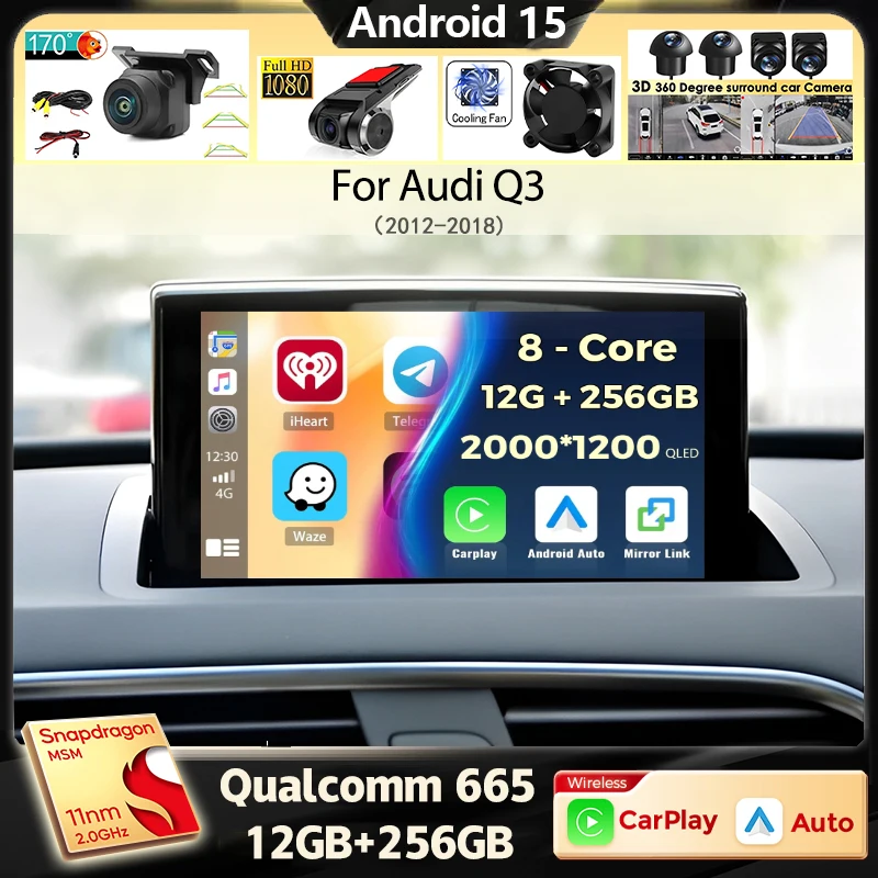 Wireless Carplay 4G Android 15 for Audi Q3 2013 - 2018 GPS Navigation Car Video Multimedia Player WiFi BT DSP Stereo Auto Tools