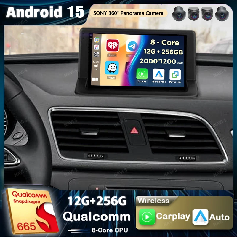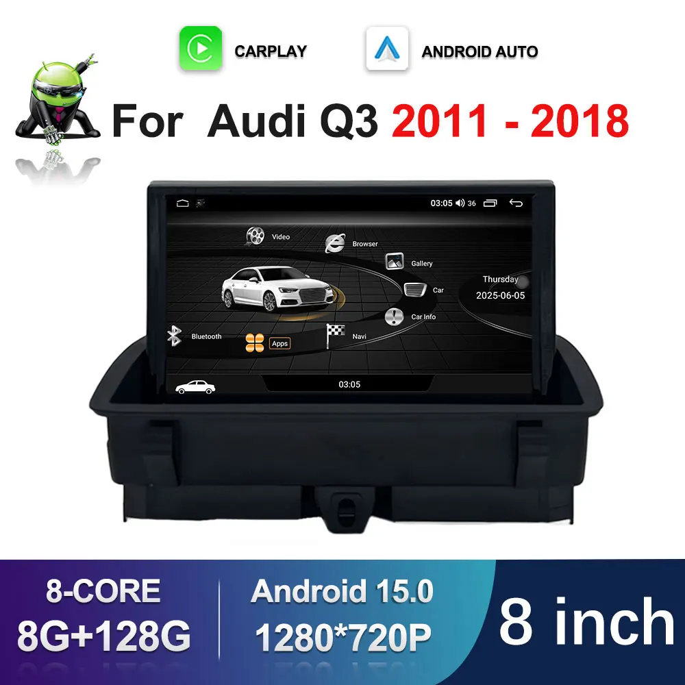 8 inch Android 15 For Audi Q3 2012-2018 Wireless Bluetooth Carplay Head Unit Qualcomm Snapdragon 680 Touch Screen Stereo System