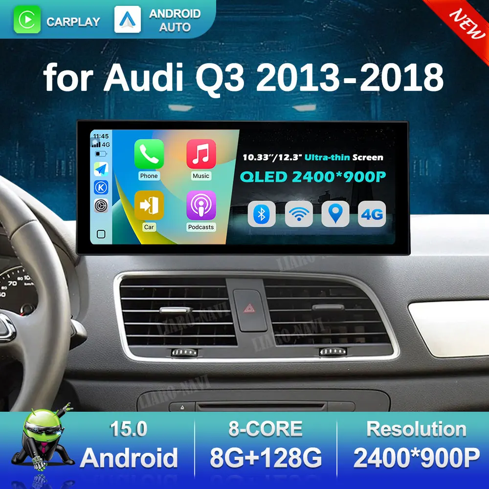 2400*900P QLED Screen Wireless CarPlay Android 15 Auto For Audi Q3 2013 - 2018 Car Multimedia Radio GPS Navi 4G WIFI BT SWC Tool