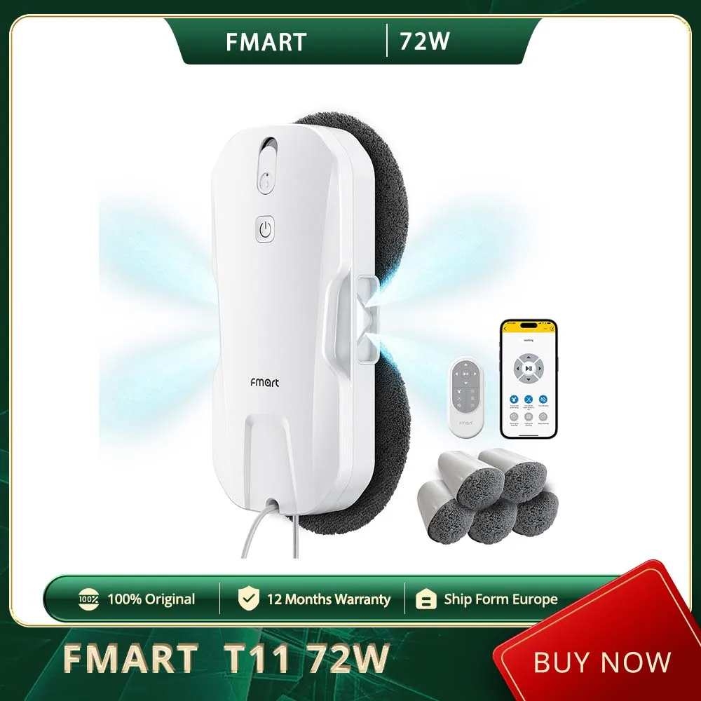 FMART T11 Window Cleaning Robot with10 Wipes,5300Pa Suction,100ml Tank,60mm Slim,4m Safety Rope, Smart Navigation,Remote Control