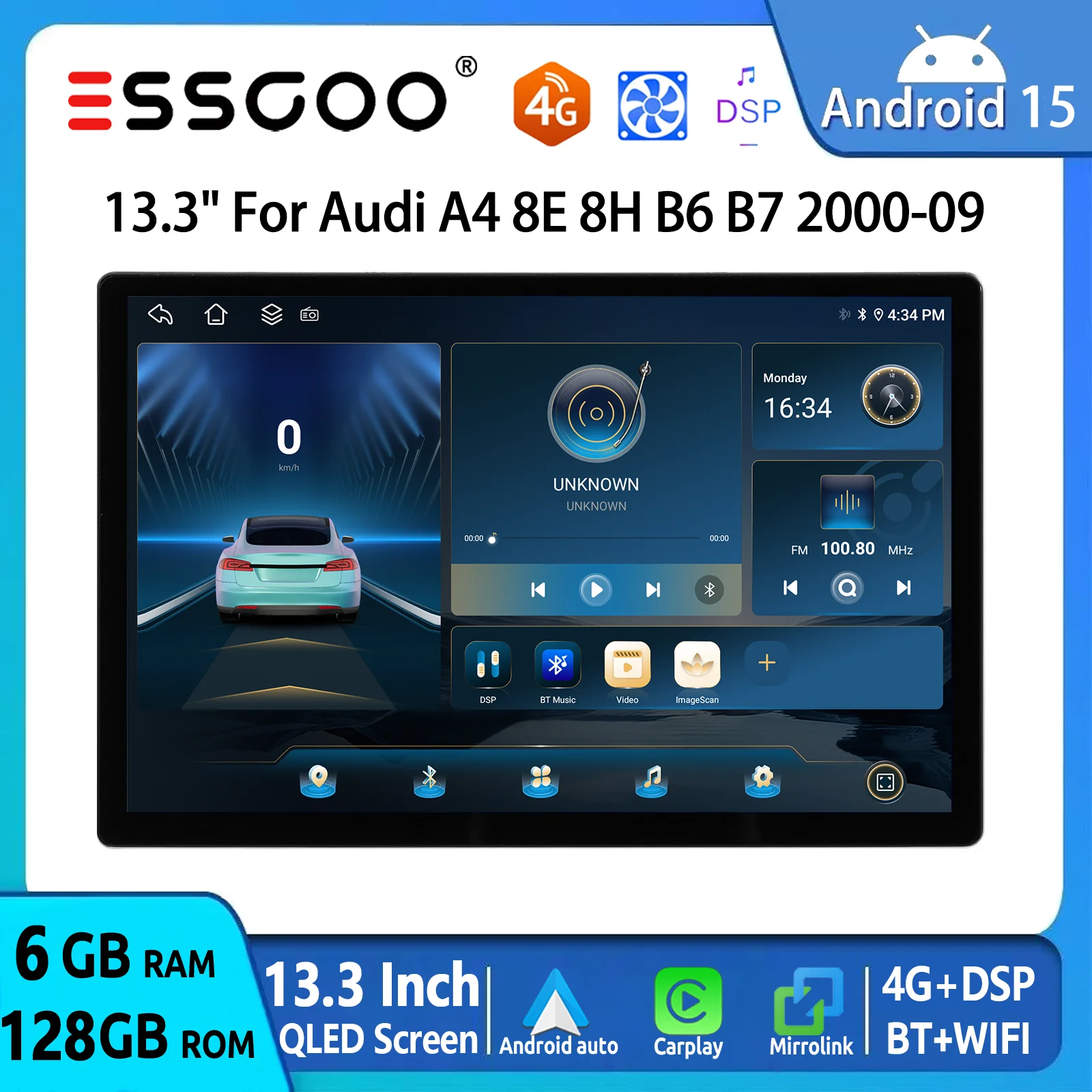 13.3" QLED Touchscreen Car Stereo 6+128G Android 15 Carplay 8Core GPS Navi For AUDI A4 S4 RS4 8E 8F B9 B7 SEAT EXEO FM AM 4G RDS