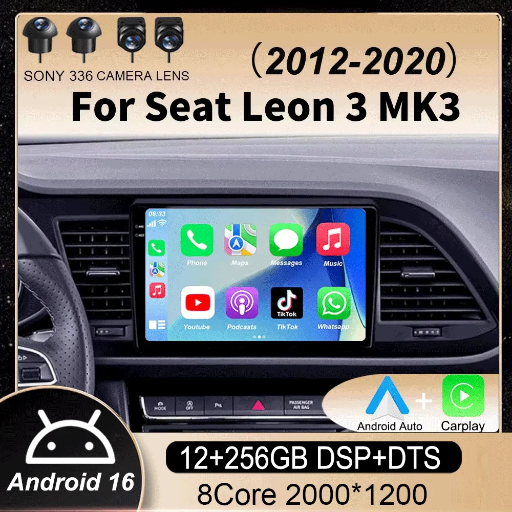 Car Radio Android 16 Carplay Auto For Seat Leon 3 MK3 2012-2020 GPS Navigation 4G WIFI Multimedia Video Player Stereo 360 Camera