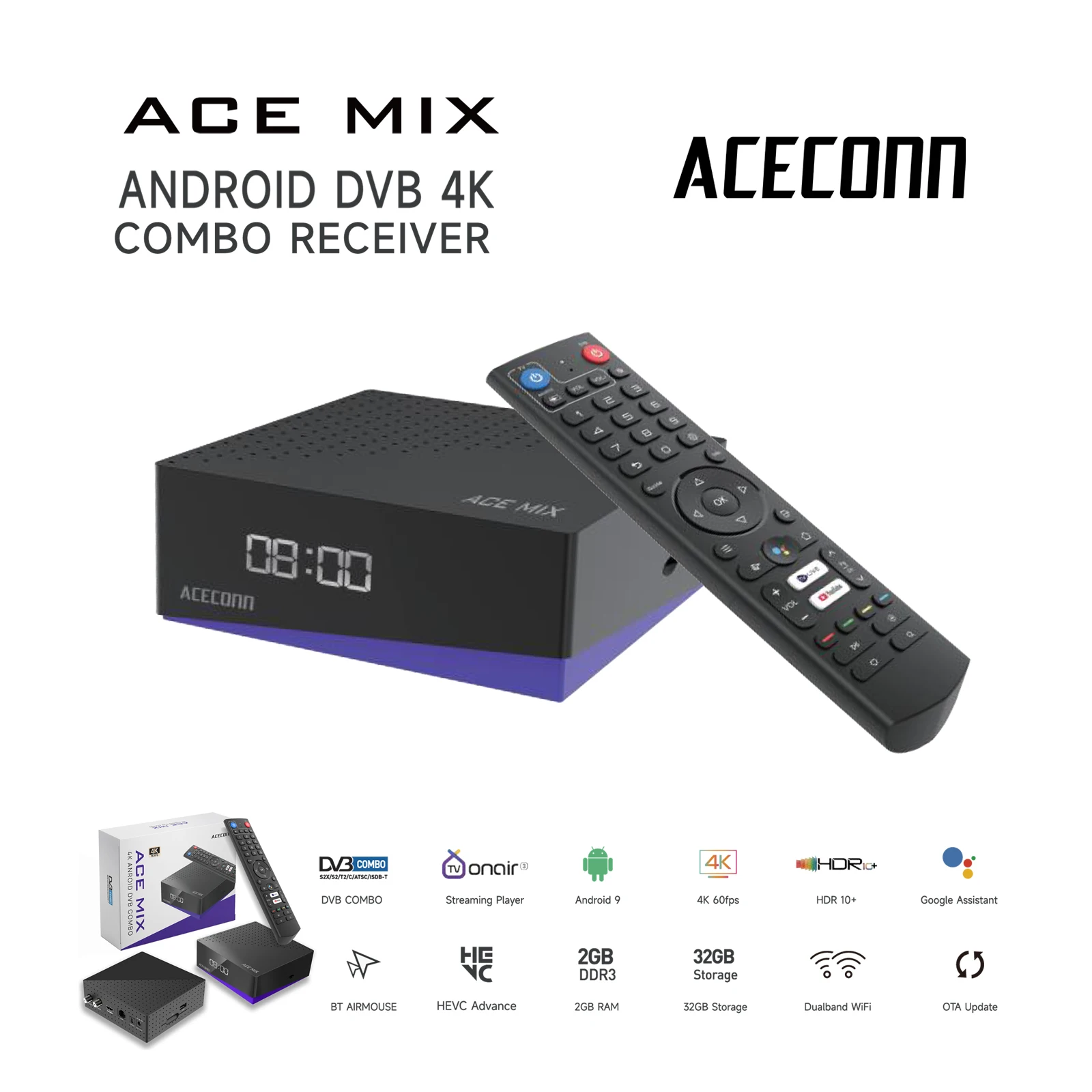 ACECONN ACEMIX TV BOX Android DVB-S2/T2/C TVONAIR3 Easy Add IPTV Abonment Box Satellite Receiver 2GB 32GB Set Top Box