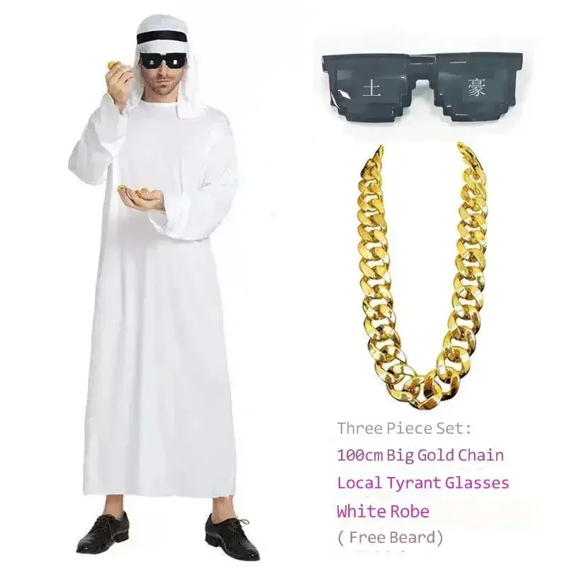 2026 Dubai Local Tycoons' Gowns Arabian Costume Men White Gown Party Annual Meeting Funny Gift Super Thick Chain Props JH#2