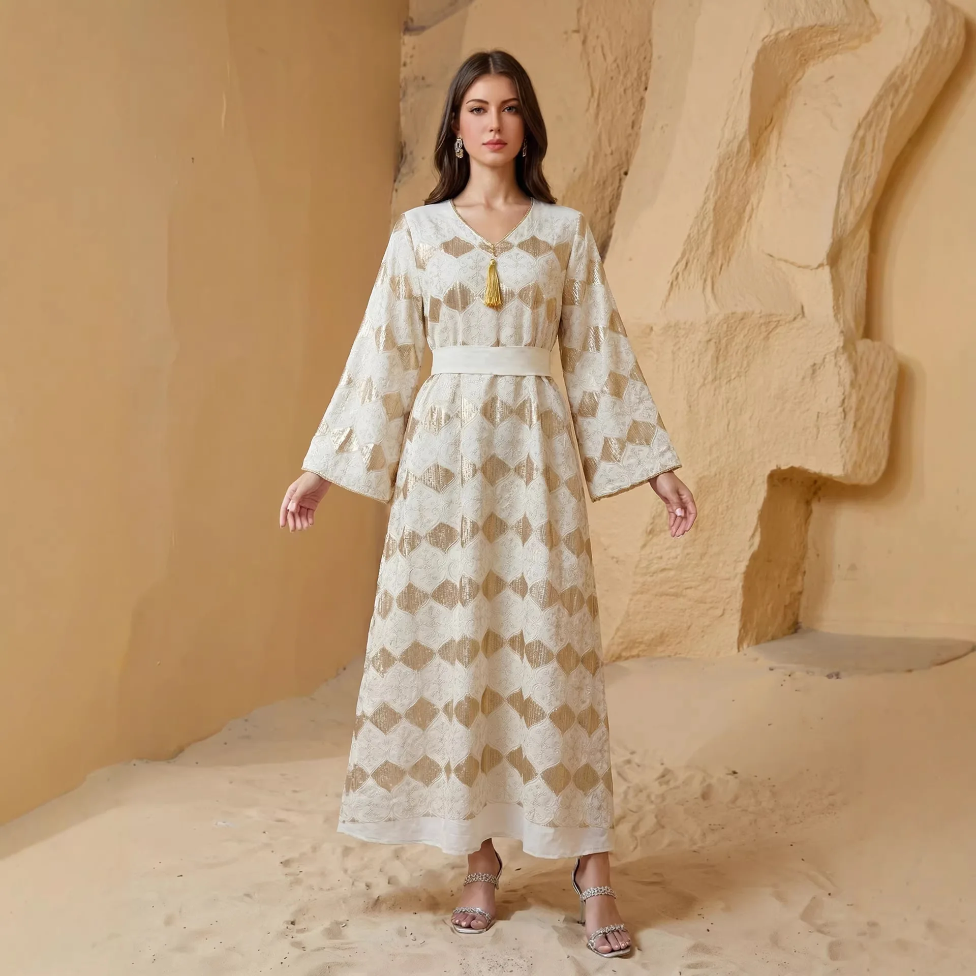 Arabian Robe Women's Muslim Embroidered Dress Kimono Jersey 2026 Muslim Long Dress Robe Abaya Ramadan Dubai Luxury Islam Elegant