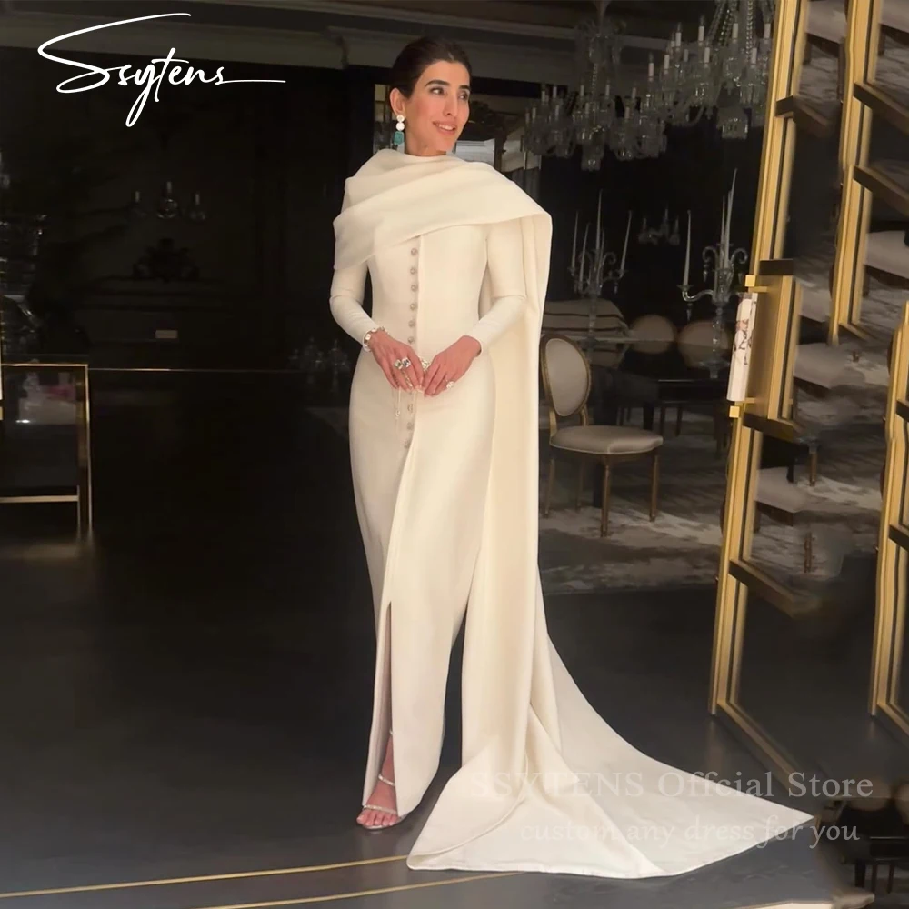 Customized Elegant Strapless White Mermaid Dubai Prom Dresses Flared Sleeve Arabian Long Evening Gowns Formal Party Dresses