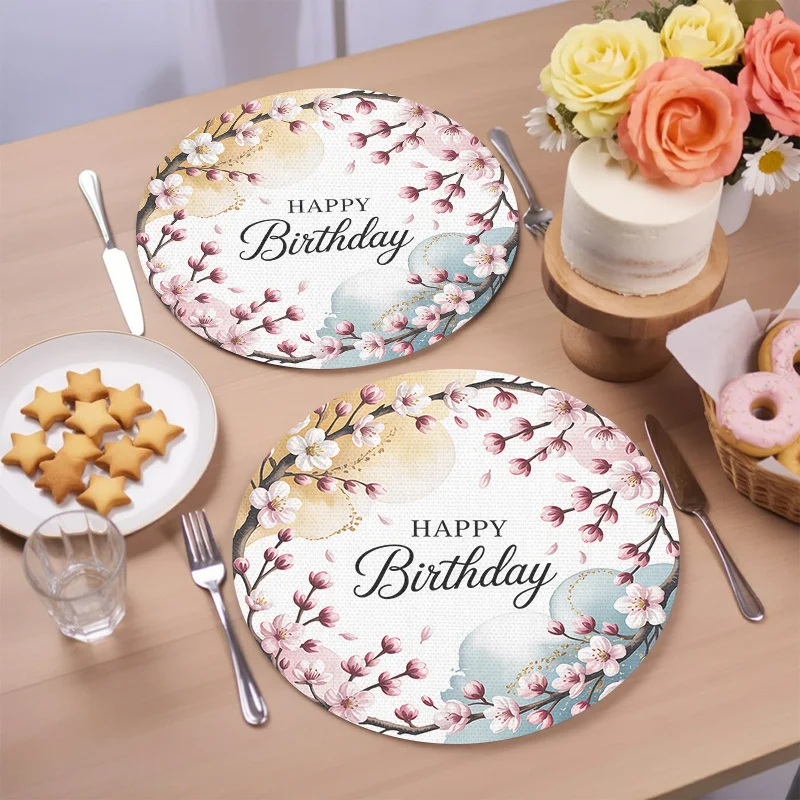 4pcs Elegant Floral Birthday Placemats - 15 Inch Round Heat-Resistant Table Mats with Non-Slip Surface, Vibrant Pink