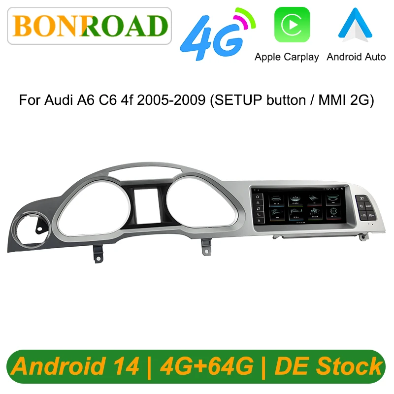 Bonroad 8.8 "CarPlay Android 14 Auto Radio For Audi A6 C6 4f 2005-2012 MMI 2G 3G Car Stereo Multimedia Player Screen Headunit