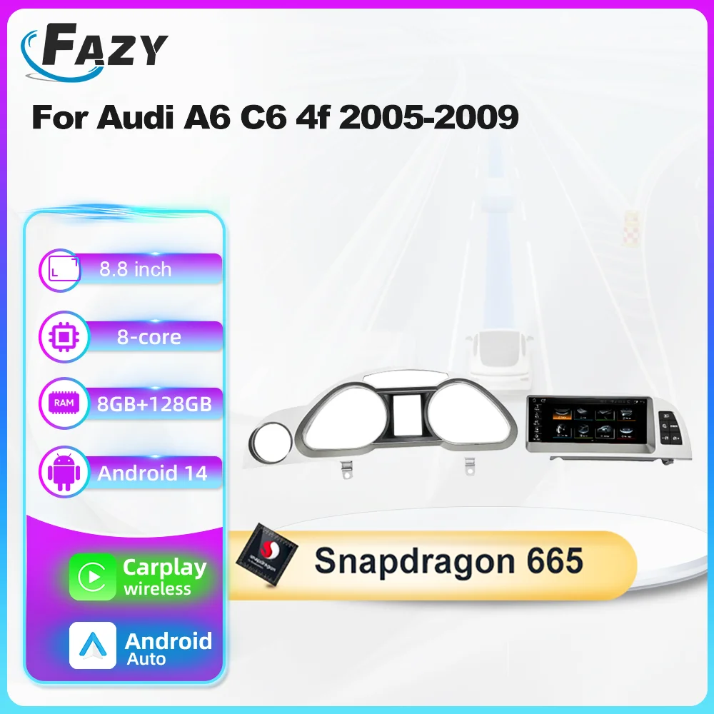 8.8"Qualcomm Snapdragon 665 Android 14 Auto Radio For Audi A6 C6 4f 2005 2006 2007 2008-2011 MMI 2G 3G Multimedia CarPlay Screen