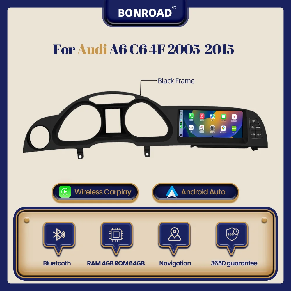 BONROAD Android Car Multimedia Player Auto Radio Wireless CarPlay Black frame For Audi A6 C6 4f 2005-2015 MMI 2G 3G Navigation