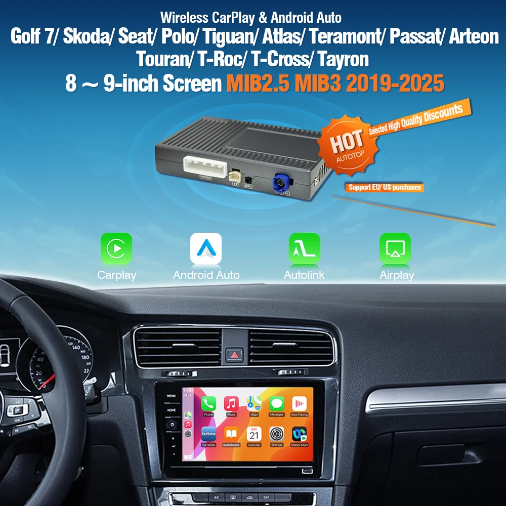 AUTOTOP Wireless CarPlay Android Auto Module for VW Volkswagen Skoda Seat Polo Tiguan Passat B8 Touran 9.2 inch screen MIB2 MIB3