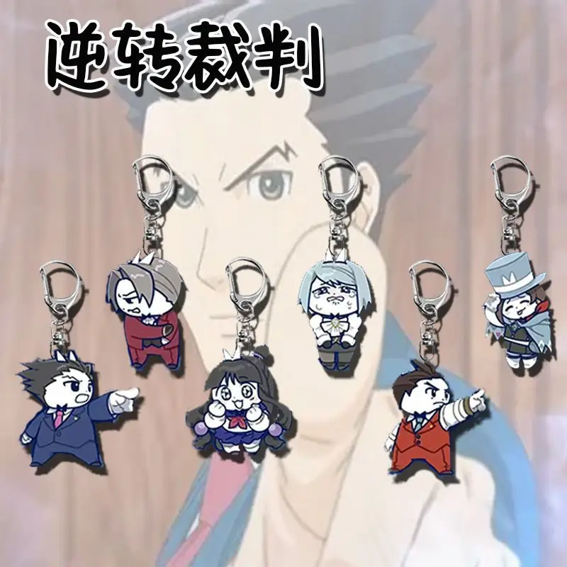 Ace Attorney Anime KeyChain Phoenix Wright Maya Fey Men Key Chain for Women Cartoon Kawaii Figure Acrylic Keyring Pendant Gifts
