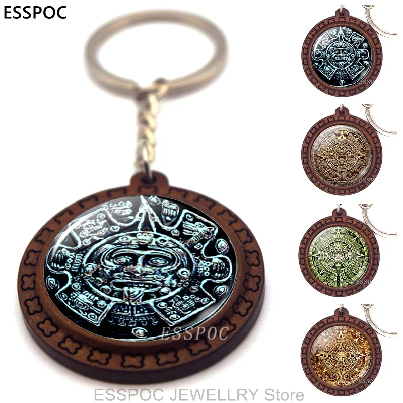 Fashion Accessories Aztec Jewelry Aztec Calendar Mexican Key Chain Engraved Wooden Keychain Keyring Mayan Calendar Pendant