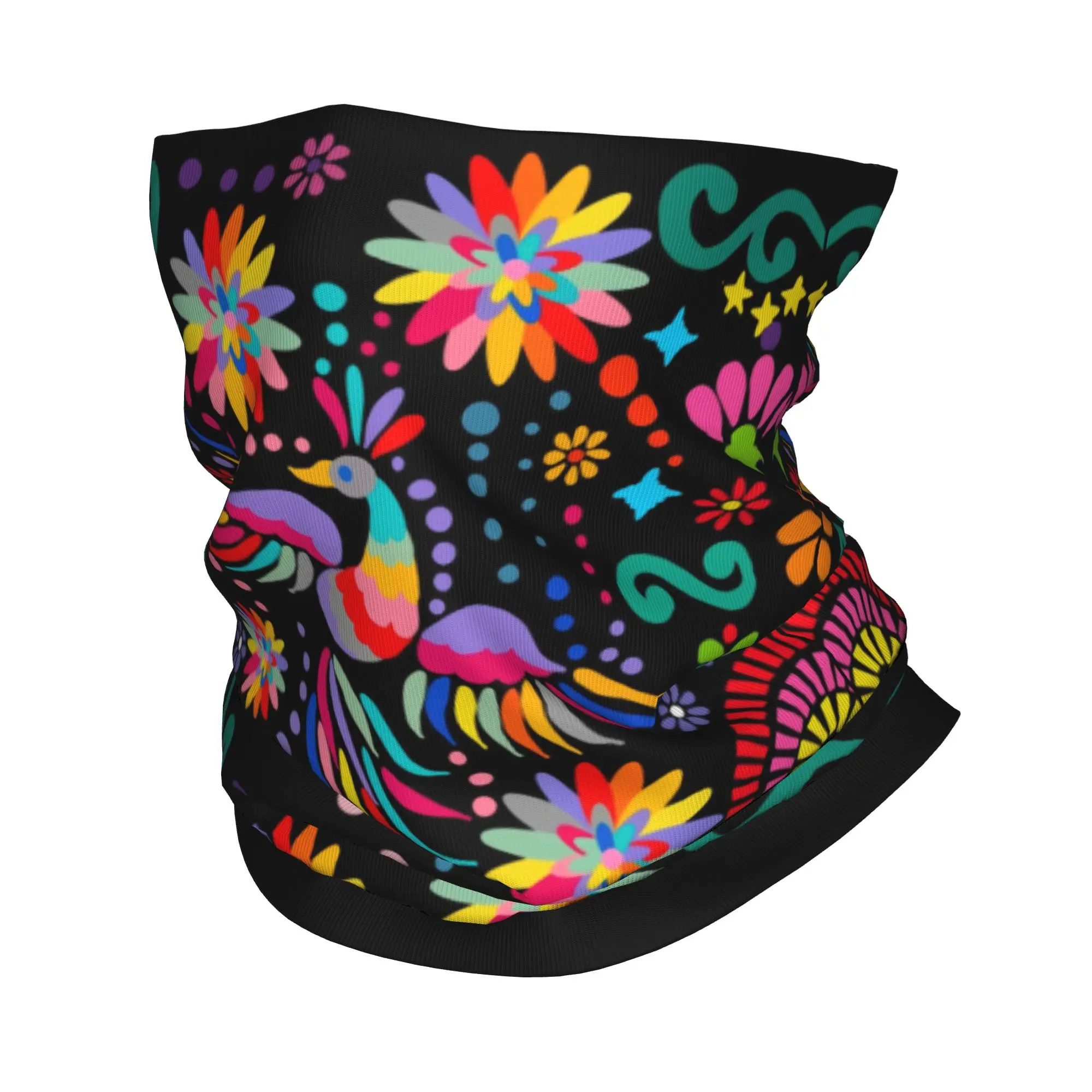 Custom Mexican Floral Flower Textile Bandana Neck Warmer Men Women Winter Hiking Ski Scarf Gaiter Colorful Embroidery Face Cover
