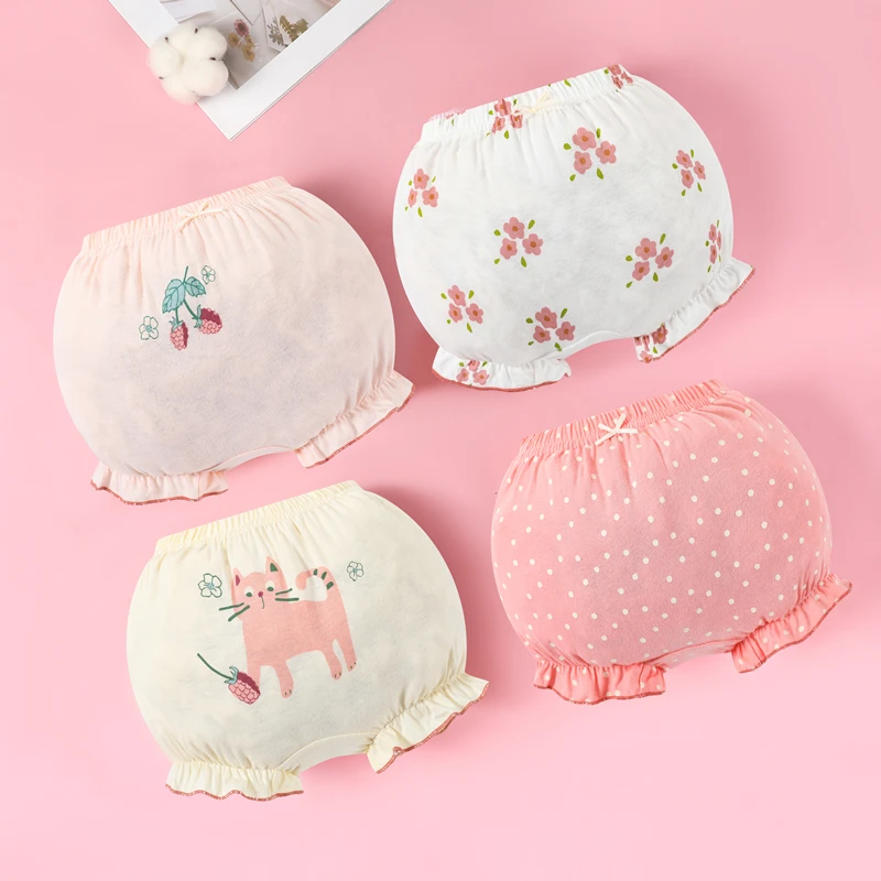 Pack of 4 Girls' Exclusive Pure Cotton Underwear Cute Sweet Style Bloomers Baby Pants