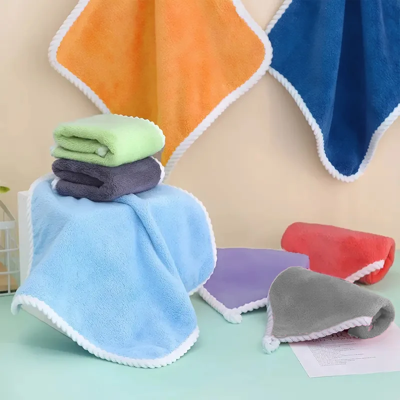 Kids Bamboo Fiber Hanging Washcloth - Square Soft Towel with Loop for Kindergarten Baby Bathroom Essentials