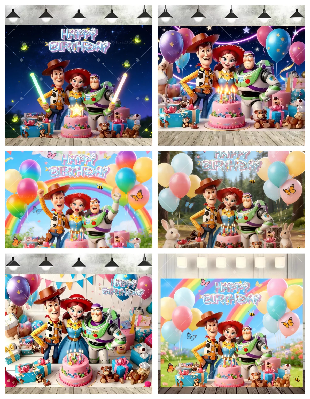 Disney birthday party shooting Buzz Lightyear dinosaur strawberry bear Barbie princess shooting poster background customizable