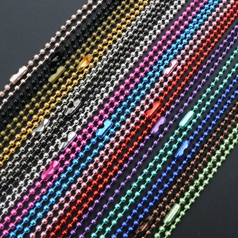 5pcs 1.5 2.0 2.4mm Length 65cm Gold Bronze Silver Colors Plated Ball Beads Chain Necklace Bead Connector For Charms Base Tray
