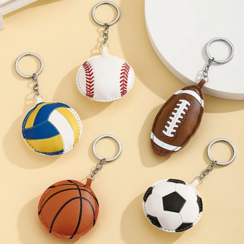 Sports-themed PU-filled Cotton Ball Keychain Pendants Featuring Baseball, Volleyball, Basketball, Soccer Football Rugby Keychain