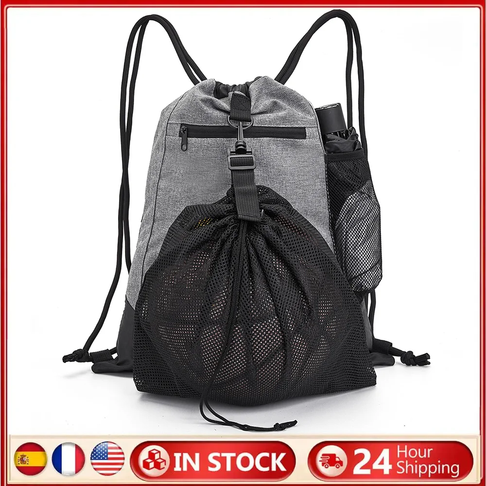 Drawstring Basketball Backpack with Detachable Mesh Bag Foldable Soccer Backpack Large Capacity Gym Sackpack Travel Trip Bag