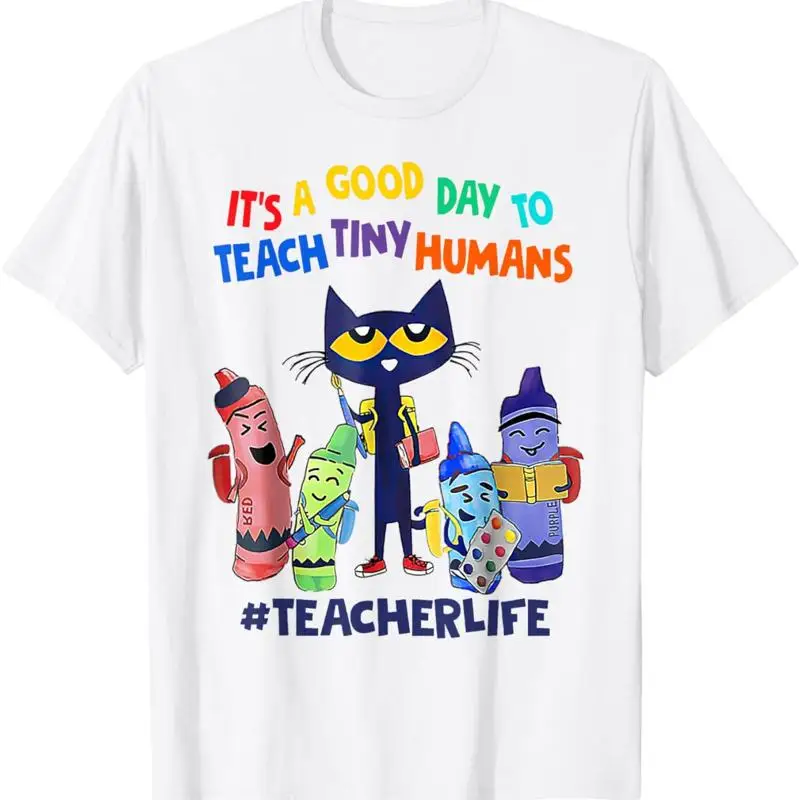 It'S A Good Day To Teach Tiny Humans Teacher Life Cat Crayon T Shirt