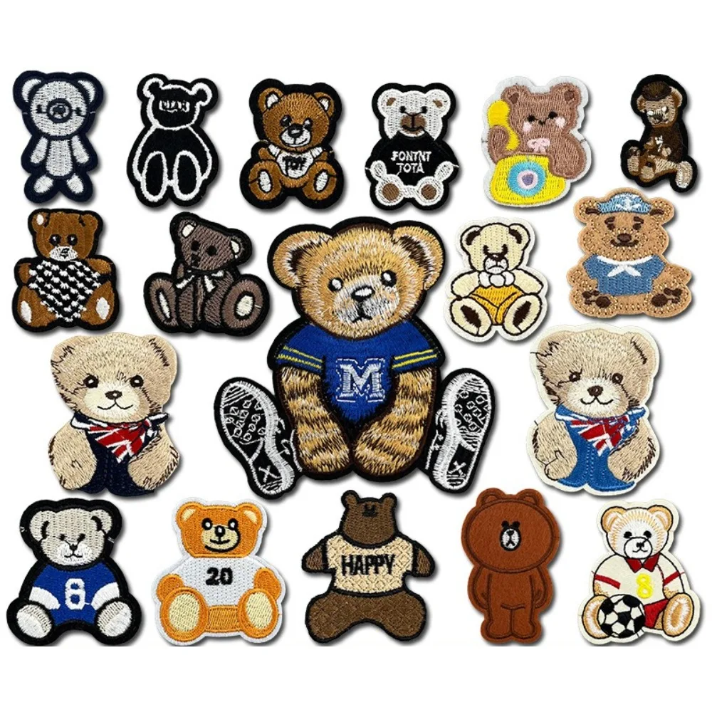Self Adhesive Cartoon Bear Embroidered Iron on Patches for Clothes T-shirt Animal Applique Clothing Fabric Sticker Stripe Badge
