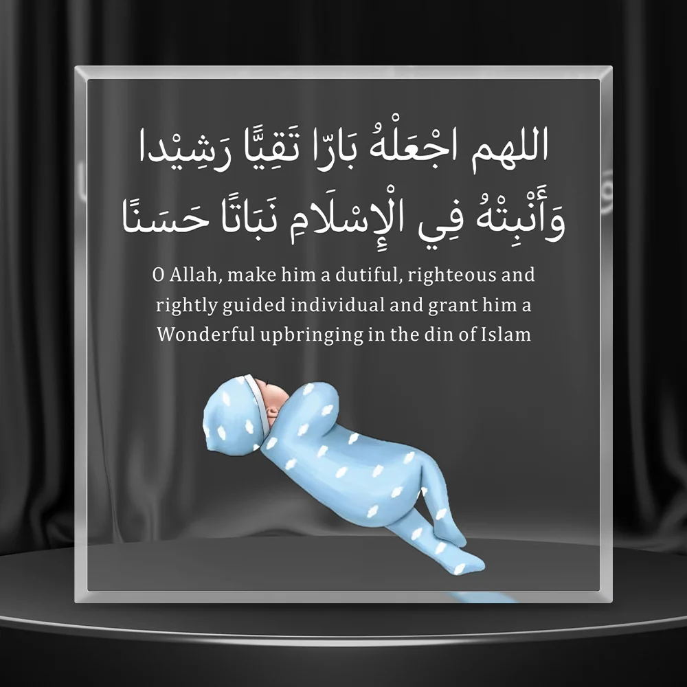 Islamic Newborn Gift 2D Acrylic Plaque for Muslim Baby Boy Girl Nursery Decor
