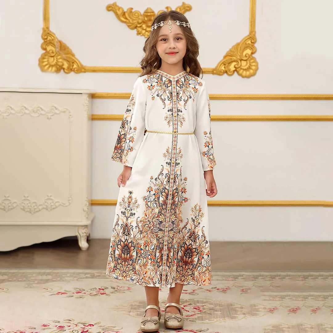 Eid Muslim Kids Dresses Saudi Dubai Abaya Ramadan Prayer Gowns Long Sleeve Kaftan Arab Islamic Casual Robes Girls Party Dresses