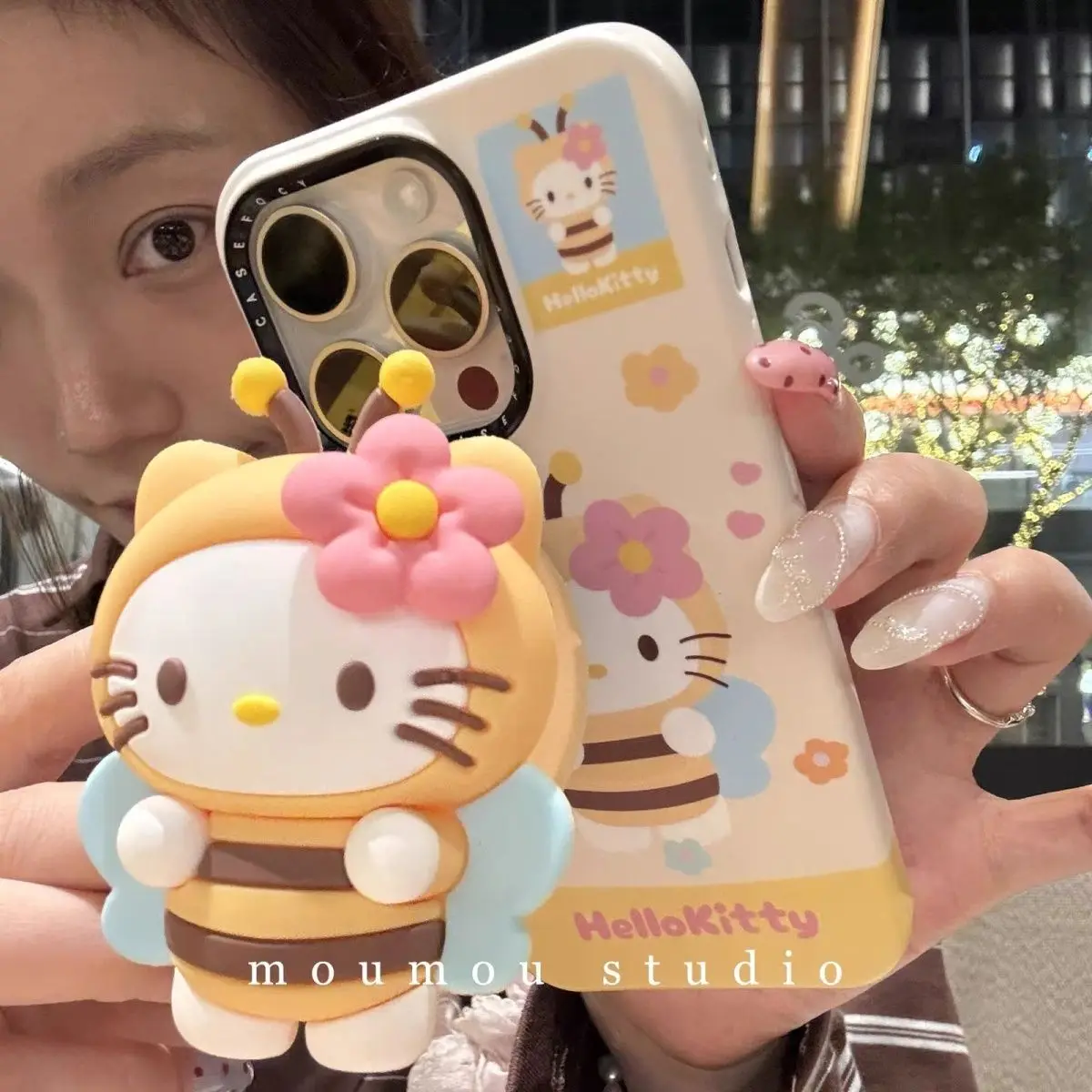 Korean Fluffy Fur Plush Cartoon Bee Lens Bracket Phone Case For iPhone 17 16 15 14 13 12 11 Pro Max Shockproof Protective Cover