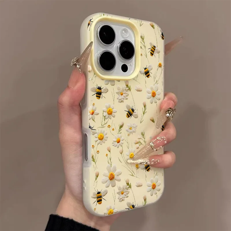 Phone Case Featuring Bees And Flowers For iPhone 17 16 Pro Max 15 14 Plus 13 12 11 7 8 SE 2020 X XR XS Max 16E Air Bumper Cover