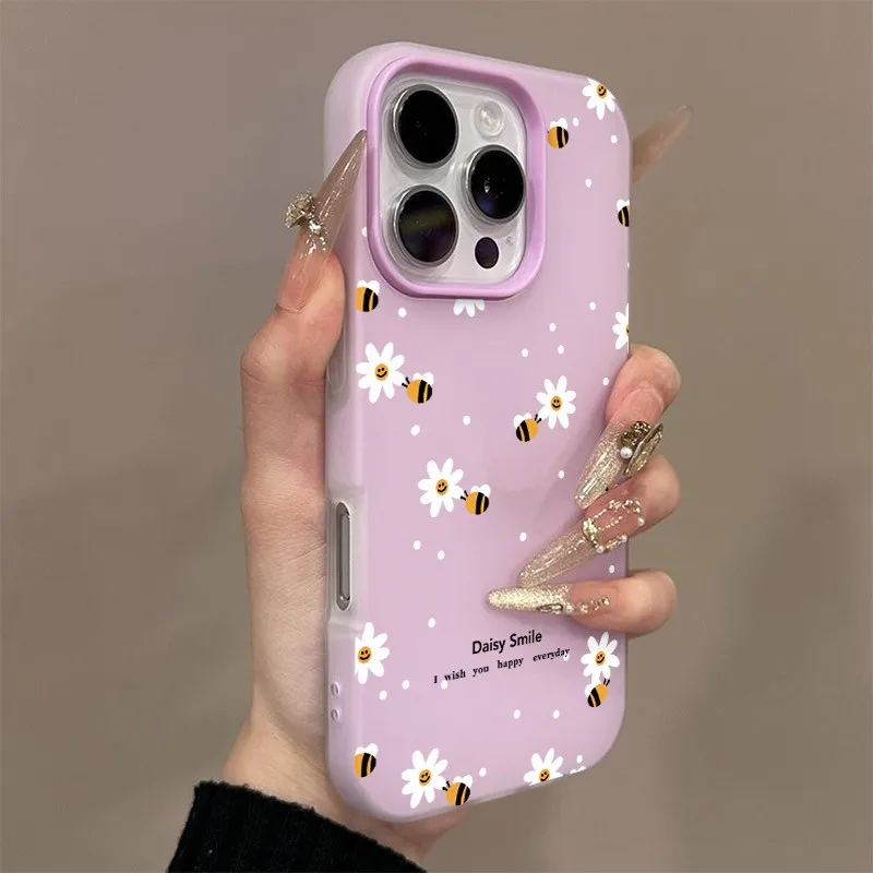 Bee And Daisy Pattern Candy Matte Phone Case For iPhone 17 16 Pro Max 15 14 Plus 13 12 11 7 8 SE 2020 X XR XS Max 16E Air Cover
