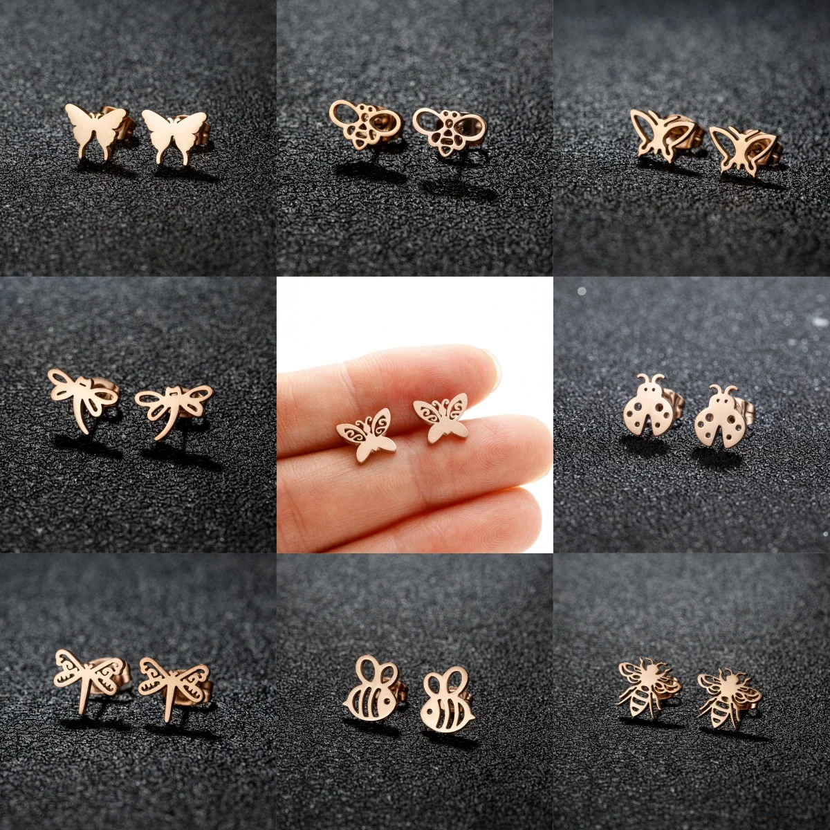 Mini Bee Butterfly Ladybug Studs Earrings Stainless Steel Tragus Piercing Vintage Fashion Jewelry Women Birthday Gift Pendientes