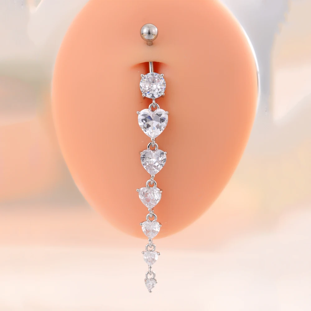 Heart Star Chain Dangle Belly Button Rings 7 Crystals Navel Belly Piercings Ombligo Women Steel Moon Series Body Jewelry Oreja
